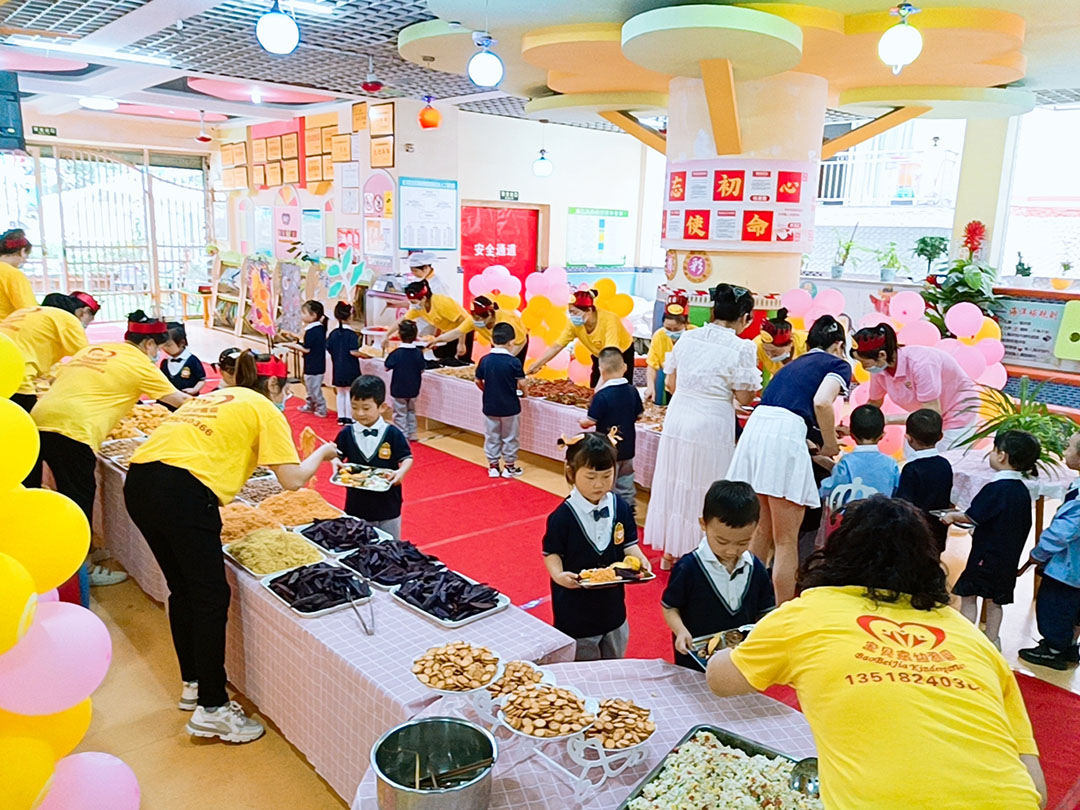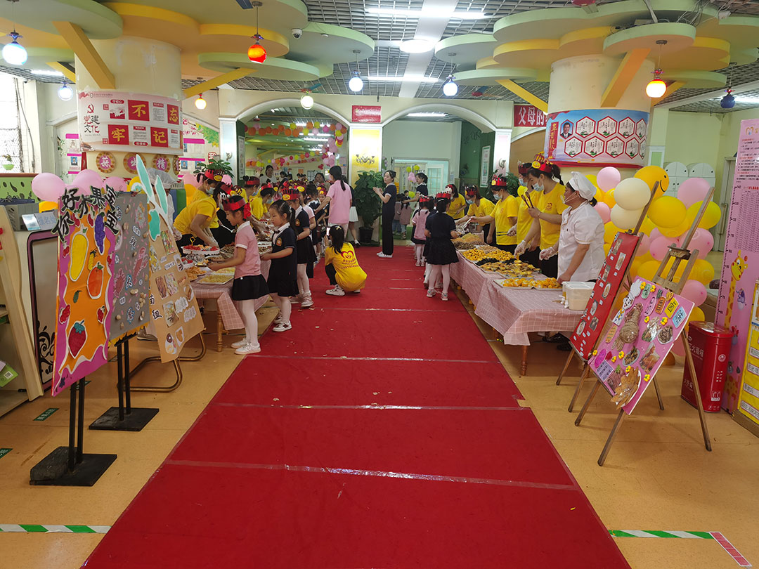 5月31日下午,“6在童年·1起嗨”美食自助餐活动又火热上演,食堂阿姨精心的准备着诱人的菜品,绞尽脑汁百变花样做出了一道道色香味俱全的美食。小朋友们脸上洋溢着惊喜,先集中学习了自助餐规则和礼仪,然后洗净小手,开始排队,有序、认真、快乐地穿梭于食物和餐桌之间,都特别遵守纪律,耐心排队等待,相互谦让。整个活动自主有序,孩子们自由地与同伴分享的美食,享受着自助餐的乐趣。