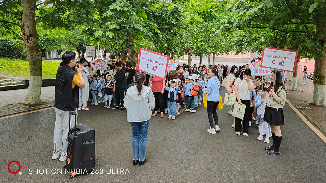 5月9日上午,果果段各班全体家长、幼儿来到位于三里坪人文生态区的铭仁园小学,学校的老师向他们简要介绍了学校基本情况、师资力量、教学特色等,引导家长、幼儿参观了学校的操场、教室、午休室、图书馆和文体设施,体验了小学课堂的英语教学,参加了体能活动,在食堂一起品尝了学校的午餐。小宝贝们兴奋不已,通过亲眼观察、亲耳聆听、亲身体验,近距离了解了小学生的学习生活与幼儿园生活的不同,感受到了小学校园生活的无限魅力,激发了他们对成长的期待和美好向往。相信不久的将来,他们一定能迈着自信、从容的步伐进入小学,开始新的生活。